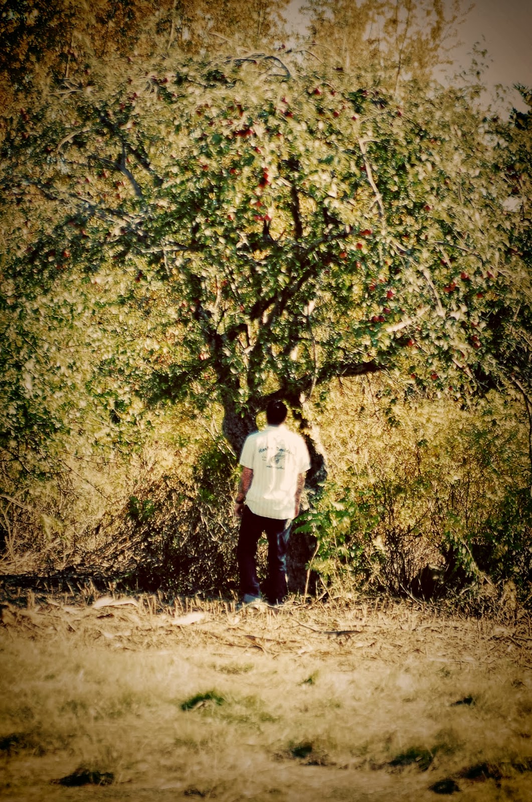 while taking these photos, dominic decided to investigate the apple tree... very closely. as in climb it and pick some apples. while not as crunchy as i like them, the apples were definitely tasty, although i may be biased since they're located in our backyard.