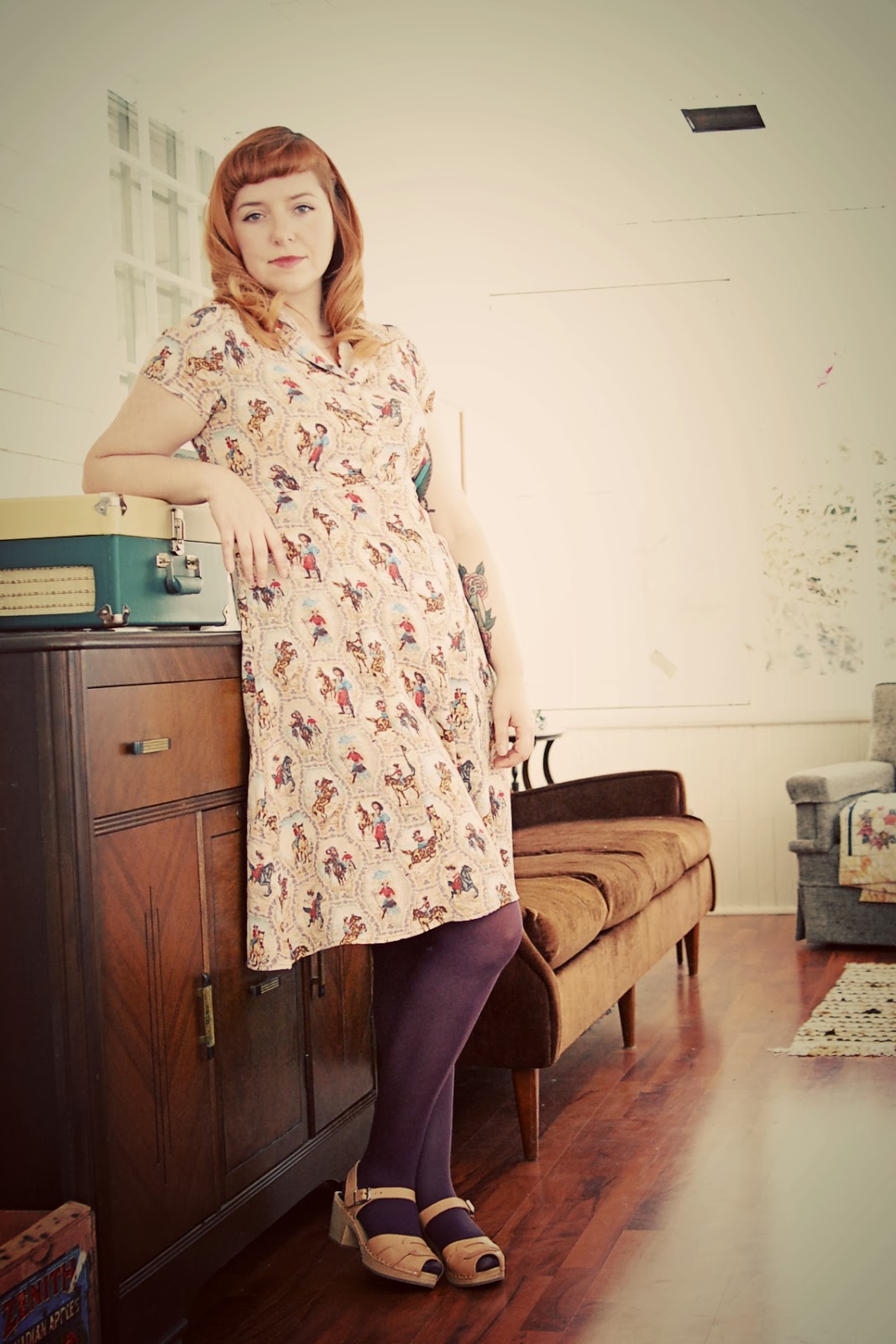 It's probably a good thing I don't live near Dollz & Dames/Diva Dolls, because I think a lot of my money would be spent towards this dress in all the different fabric patterns! I hesitated buying it, with the cowboy pattern, because I thought it might be hard to wear often, and for the price-tag, I'd want to be able to wear it often. It surprises me how versatile a cowboy pattern can be... I've styled it so many ways, with so many colours, that it actually is incredibly practical.